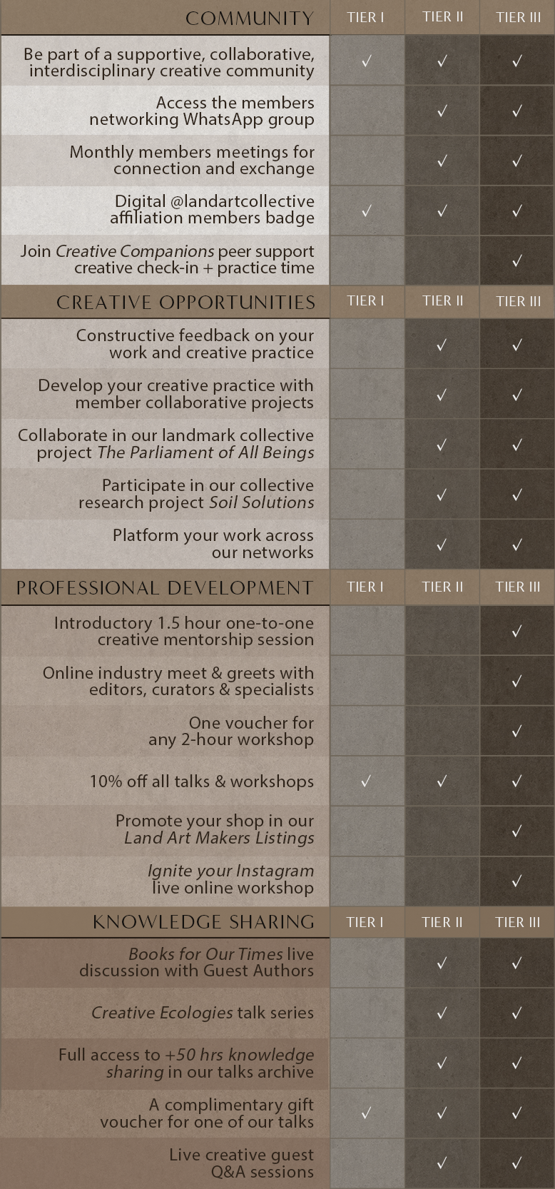 Whether you’re just starting out or well-established, the Land Art Agency membership gives you the inspiration, structure and support to grow as a creative thinker and maker.
