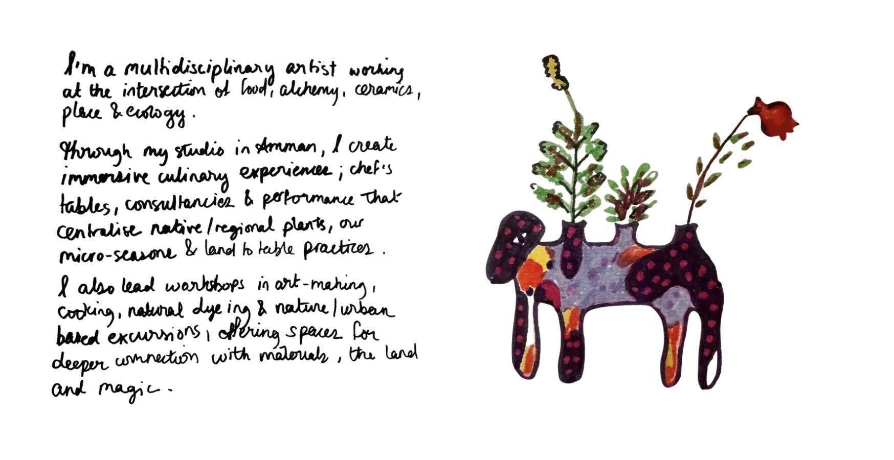 Lora Aziz is a British Egyptian artist whose creative practice reimagines contemporary cross-cultural relationships with land and nature through wildcrafting, community herbalism, earth science and visual ethnobotany.